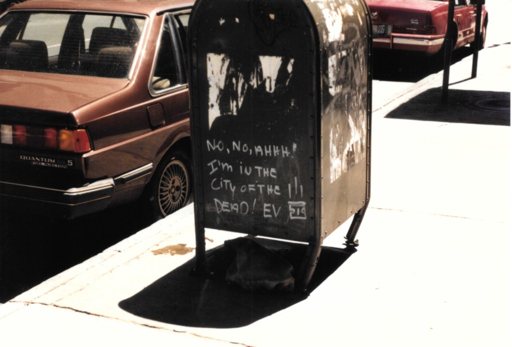 In the 1980s, I was really into James Dean. I would go to Fairmount, Indiana for his birthday (February 8) and the day he died (September 30.) There are two men (David and Lenny) that own a James Dean museum there, who also lived in New York and had a James Dean walk. So, in 1989, some friends and I went to New York to see places Jimmy lived and ate. It was my first trip there and was back when we only had film. I had the photos at my parents house until recently. I brought them back to Los Angeles with me and looked through them.