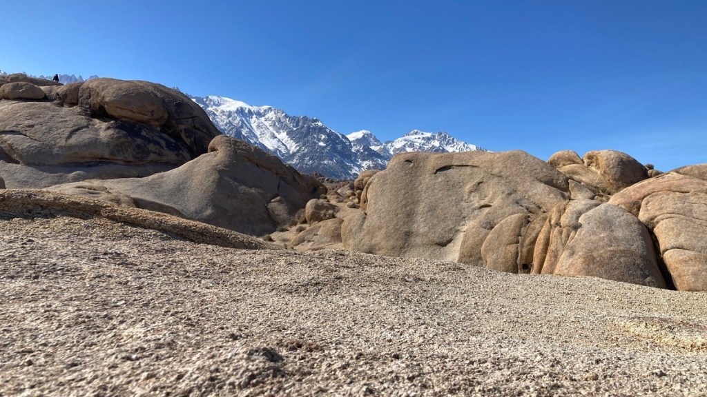 Next, we drove closer to Mt. Whitney, which is on the same road we took to see the arches and filming sites. My car is really old, so I didn’t go too far, as it looked like more incline than she can handle these days. There really were no other cars on the road, so we pulled over to gaze. Camping is available in the area, FYI.