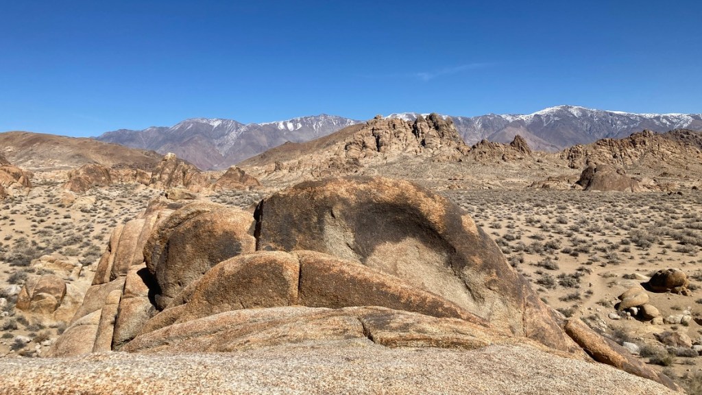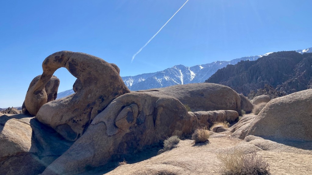 Next, we went to the Alabama Hills. Drive up Movie Road and park. You can walk to different movie sites. We grabbed a map from the Film Museum earlier in the day. There are also 2 arches that are quick and easy walks (in addition to the areas used for films.) Be prepared to wait for a bit if you would like a photo by the arches. There was not a long line, but just enough people hanging around that I gave up and just sneaked in a photo during the moments people were out of view. There are certainly more hikes in the area, but if you are looking for something simple to do with the family, this is a good area.