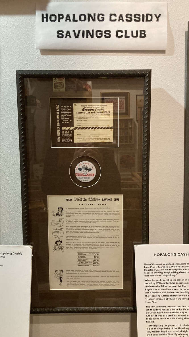 The museum has displays, including vehicles that were used in the movies filmed there, like a 1937 Plymouth Coupe from “High Sierra”, clothes worn by old timey actors, like Fatty Arbuckle and John Wayne, and modern actors, such as Robert Downey Jr in “Iron Man.” And yes, a gift shop with books!!! Always the books. It is a smaller museum, so only took about 45 minutes to see everything. It was a great way to start the day of activities.
