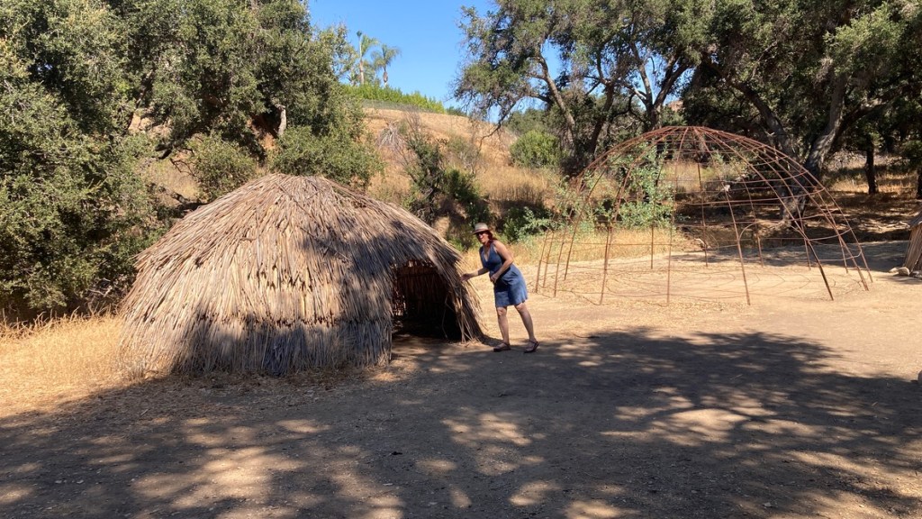 Up a short way from the museum building is a village where there are recreations of the ‘ap, in which Chumash people lived. There are places to sit near them, if you just want to rest your feet while you look at the village. The ‘ap are open, so you can walk inside them.