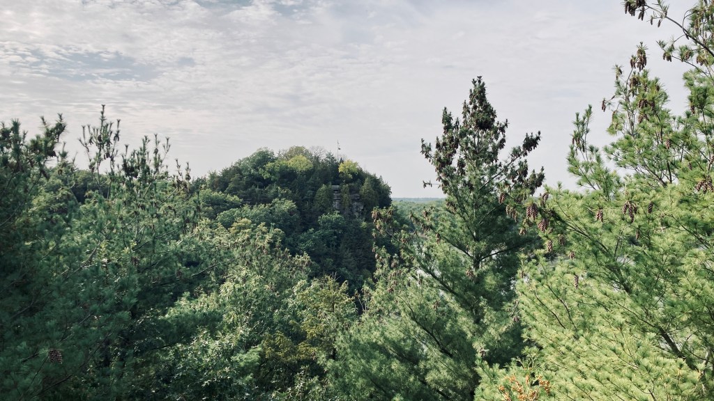 The whole park is named after a legend that a Pontiac war-Chief was murdered by a member of the Illinois tribe. When other tribes came to the village of the Illinois tribe for revenge, it caused them (the Illinois) to flee to this rock where they found themselves surrounded. With no way out to get food or water, they starved to death. However, in reality, the chief was actually murdered hundreds of miles away and not by someone else. Historians think the legend is perhaps based on a 1722 siege by Europeans. Either way, this site is historical and beautiful.