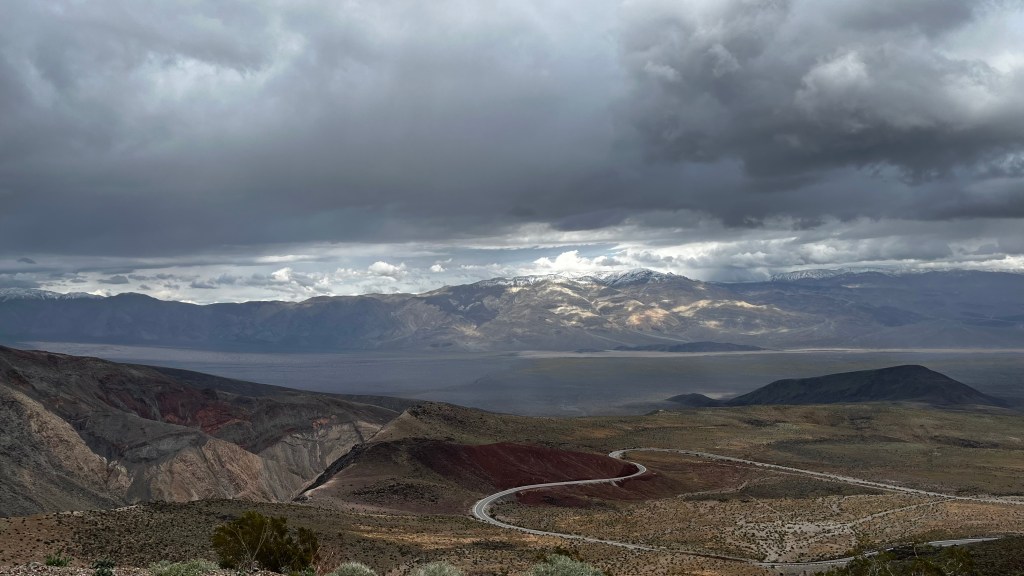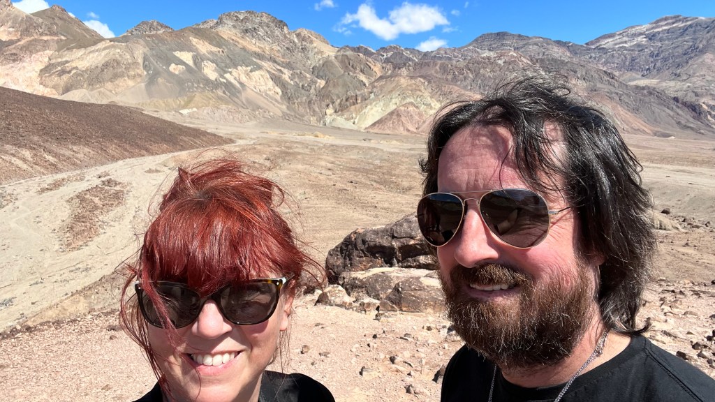 We just had to fit one more site in before we headed to our next hotel. We finished the day with Dante’s View. Up, Up, Up you drive. There was ample parking and very worth the extra time we took. What a view of the valley below! And sooo windy!!