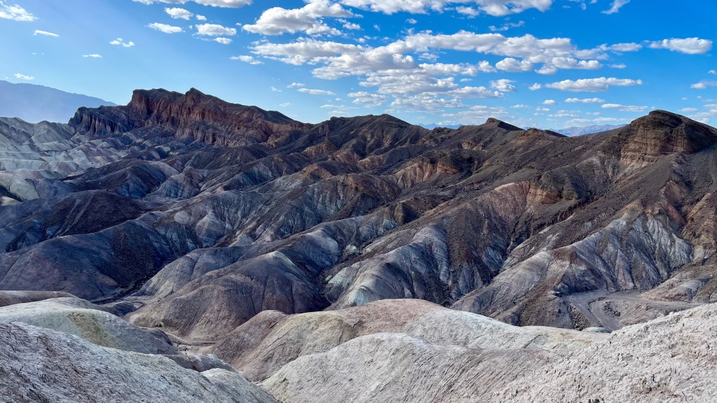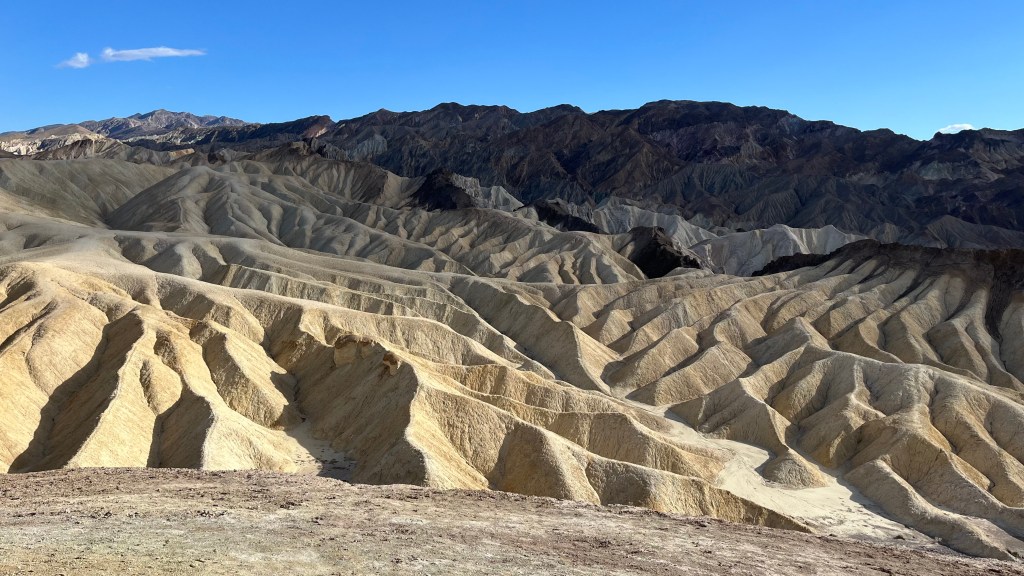 Next up: Zabriskie Point. Another easy to park – easy-to- walk-to vista point. You can go on a hike starting here or just be lazy & look out from the viewing area like we did. Good god! How is this even real?