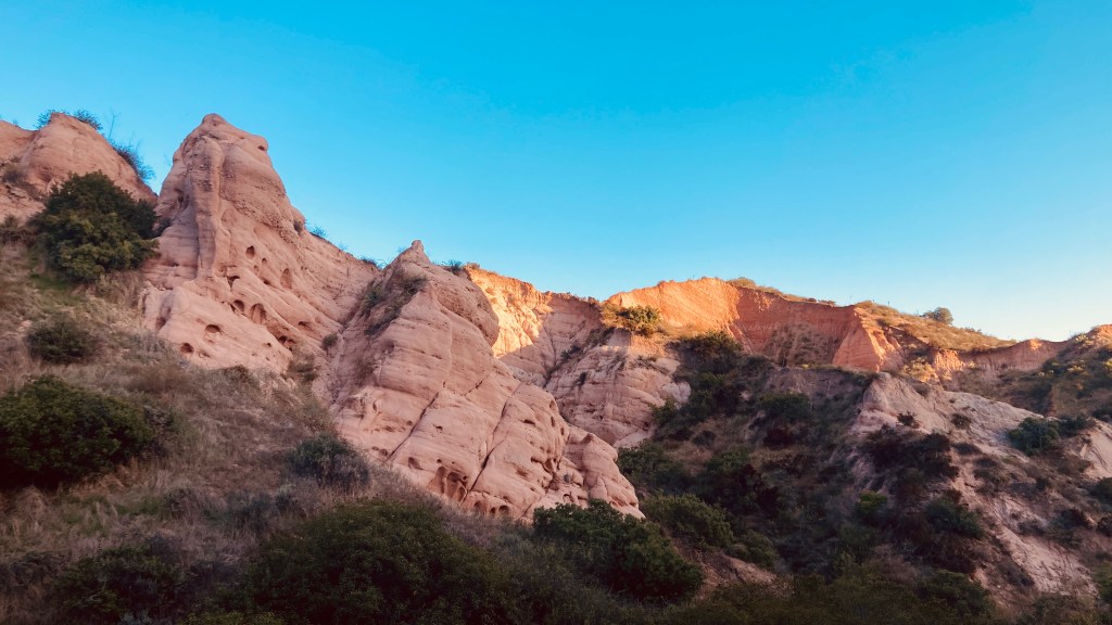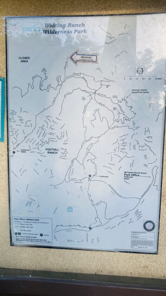 There is a hike in Whiting Ranch Wilderness Park in Trabuco Canyon, California that leads to Red Rocks. The area dates back to 20 – 40 million years ago. The hike is easy and perfect for an after work walk. There are bathrooms at the entrance. I saw hikers and mountain bikers headed to the trails. It is very easy to get to, not a far drive into a forest or anything like that. The parking lot is right by the trail entrance. When I went, there were very few people around, which is always my favorite.